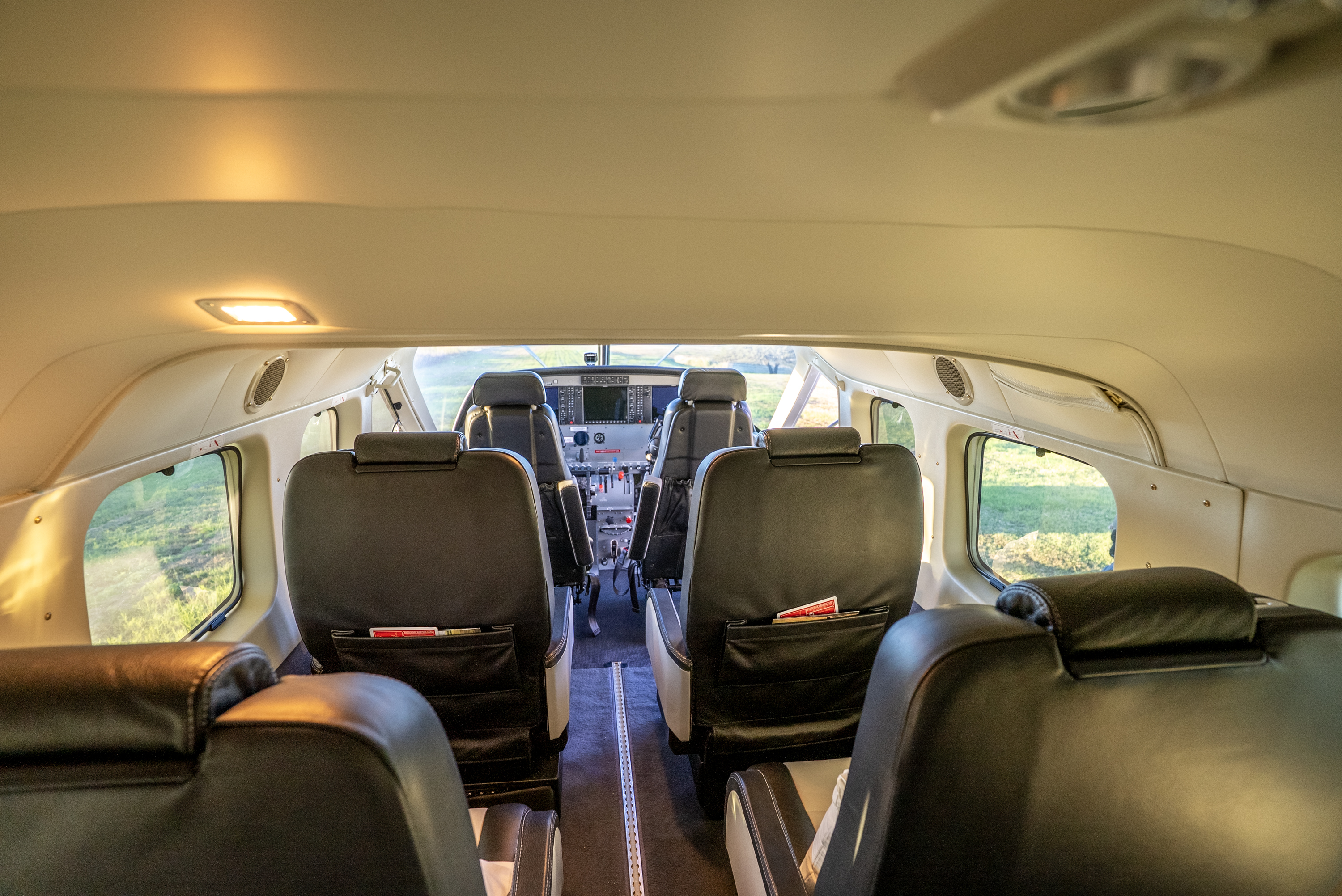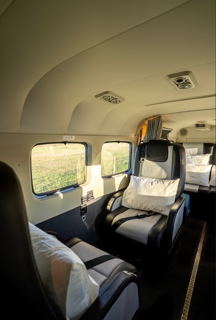 Cabina amplia, con un interior premium equipado con butacas que se reclinan 180 grados, conexión WIFI a bordo, puertos USB que permiten cargar el celular mientras se está en vuelo y un baño. Con grandes ventanillas que permiten disfrutar de vistas panorámicas en todo momento.